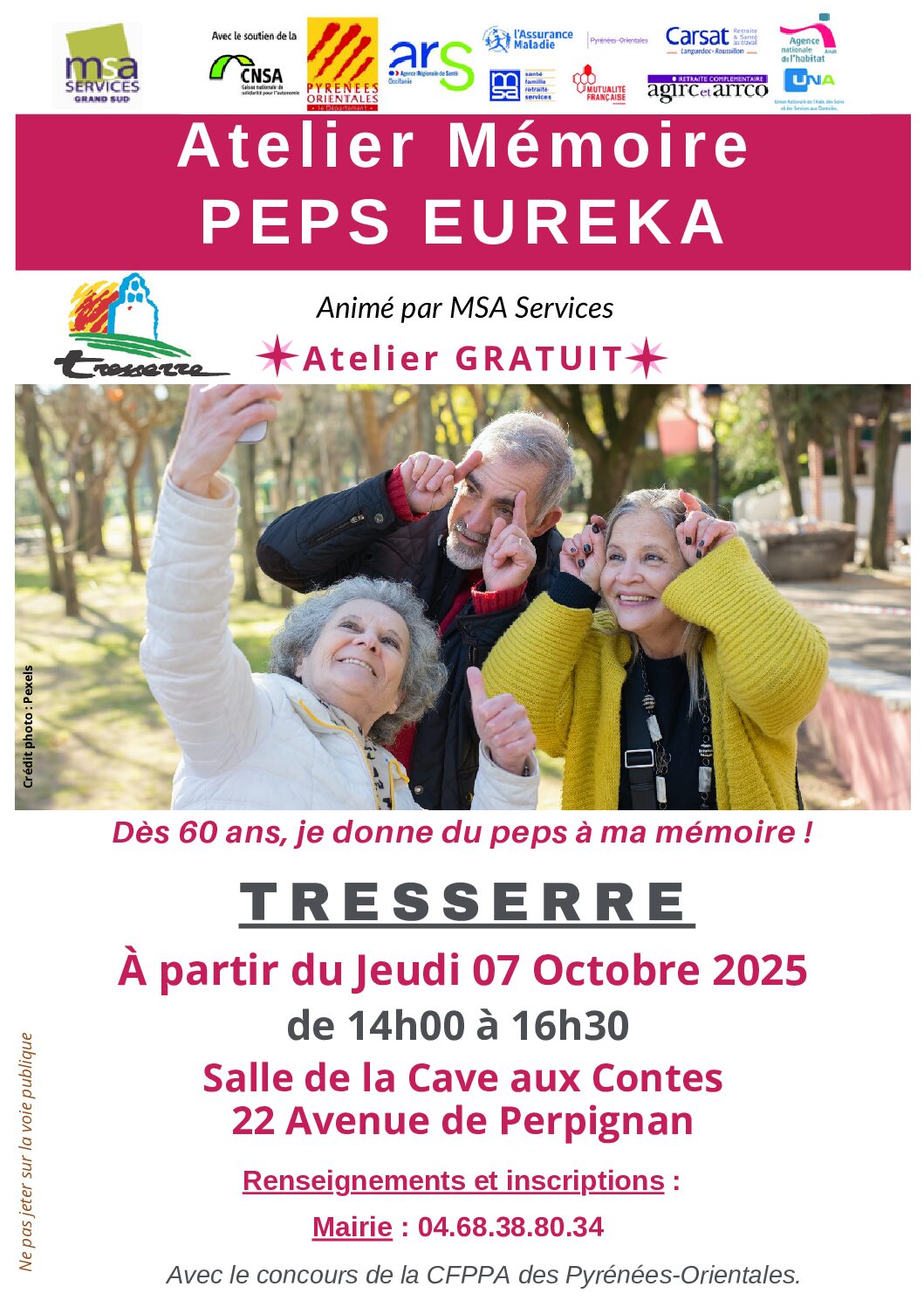 Atelier mémoire à Tresserre le 7 octobre 2025, de 14h à 16h30, à destination des personnes de plus de 60 ans